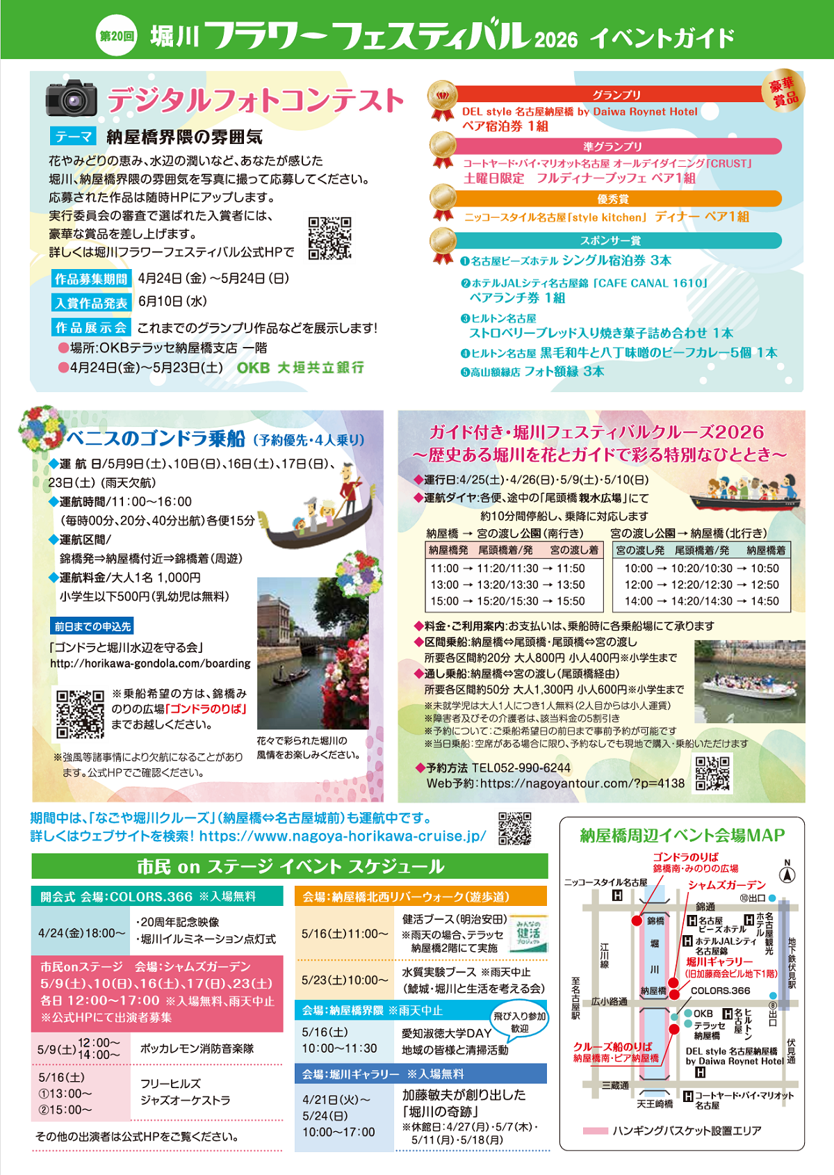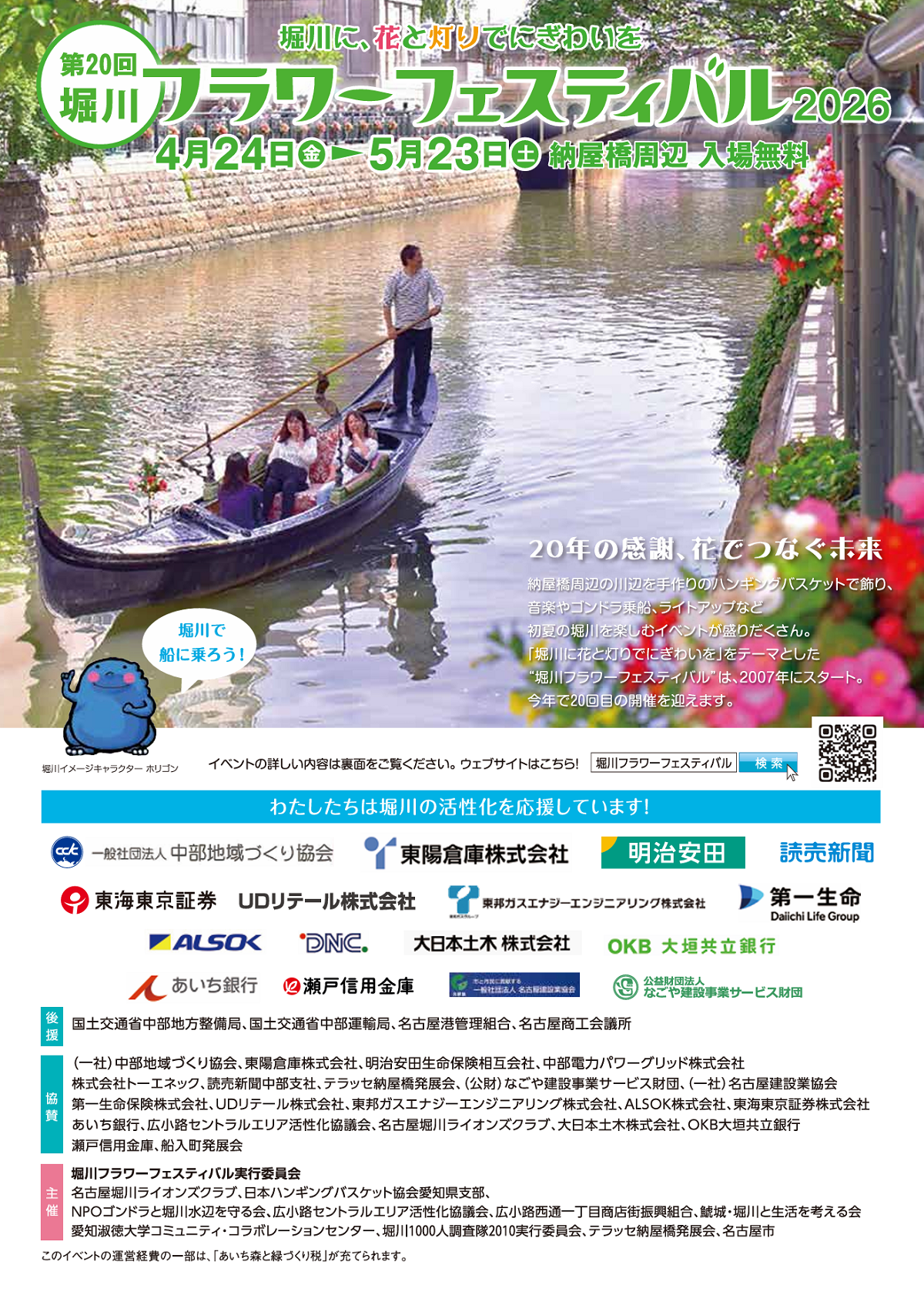 | ¡¡Ì¾¸Å²°¤ÎËÙÀî¤È¤Ï ¡¡1610ǯ¤Î̾¸Å²°¾ëÃÛ¾ë¤È¤È¤â¤ËÆÁÀî²È¹¯¤ÎÌ¿¤Ç³«ºï¤µ¤ì¤¿ËÙÀî¤Ï¡¢Åö»þ ¹Åç¾ë¼ç¤Ç¤¢¤Ã¤¿Ê¡ÅçÀµÂ§¤¬³«ºïÁÚÊô¹Ô¤È¤Ê¤ê¡¢¾ë²¼Ä®¤Ë¿©ÎÁ¤ädzÎÁ¤Ê¤É¤Î²Ùʪ¤òÍ¢Á÷¤¹¤ë¤¿¤á¤Ë¤¤é¤ì¤¿Îò»Ë¤¢¤ëÀî¤Ç¤¹¡£ ̾¸Å²°¤ÎȯŸ¤ò¿å±¿¤äÅÔ»ÔÀ°È÷¤Ê¤É¤¢¤é¤æ¤ëÌ̤«¤é»Ù¤¨¤Þ¤·¤¿¡£ ¡¡¸½ºß¤Ï¾ô²½¤â¿Ê¤ß¡¢Ì¾¸Å²°¤ÎÅÔ¿´¤òή¤ì¤ëËÙÀî¤Ï¤Þ¤Á¤Ë½á¤¤¤òÍ¿¤¨¤Æ¤¤¤Þ¤¹¡£²ñ¾ì¤ÎǼ²°¶¶³¦·¨¤Ë¤ÏÍ·ÊâÆ»¤¬À°È÷¤µ¤ì¡¢Àò¸þ¤¤¤¿¤ªÅ¹¤â¤¢¤ê¡¢Í·ÊâÆ»¤Î¥Æ¥é¥¹Àʤǿ©»ö¤ò¤¹¤ë¤³¤È¤â¤Ç¤¤Þ¤¹¡£ ¤Þ¤¿¡¢Ç¼²°¶¶¤Ï±É¤È̾¸Å²°±Ø¤Î´Ö¤Ë¤¢¤ê¡¢¹¾®Ï©Ä̤ò»¶ºö¤·¤Ê¤¬¤éˬ¤ì¤¿¤ê¡¢½ÉÇñ»ÜÀߤ⿤¯ÃÂÀ¸¤·¡¢Ìë¤âËÙÀî¤Î¥é¥¤¥È¥¢¥Ã¥×Ìë·Ê¤ò³Ú¤·¤àÊý¤¬Â¿¤¯¤ß¤¨¤Þ¤¹¡£¤¼¤Ò¡¢´Ñ¸÷¤ä»¶ºö¤Ë¤ª±Û¤·¤¯¤À¤µ¤¤¡£ ¡¡Horikawa Flower Festival 2026 ¡¡We offer the waterside space where a lot of flowers were displayed. You can enjoy a walk in the morning and a cruise. This river is Nagoya's historical canal. Horikawa Canal was built by Busho. Horikawa Canal served as a port for the castle town and contributed to the development of Nagoya. |